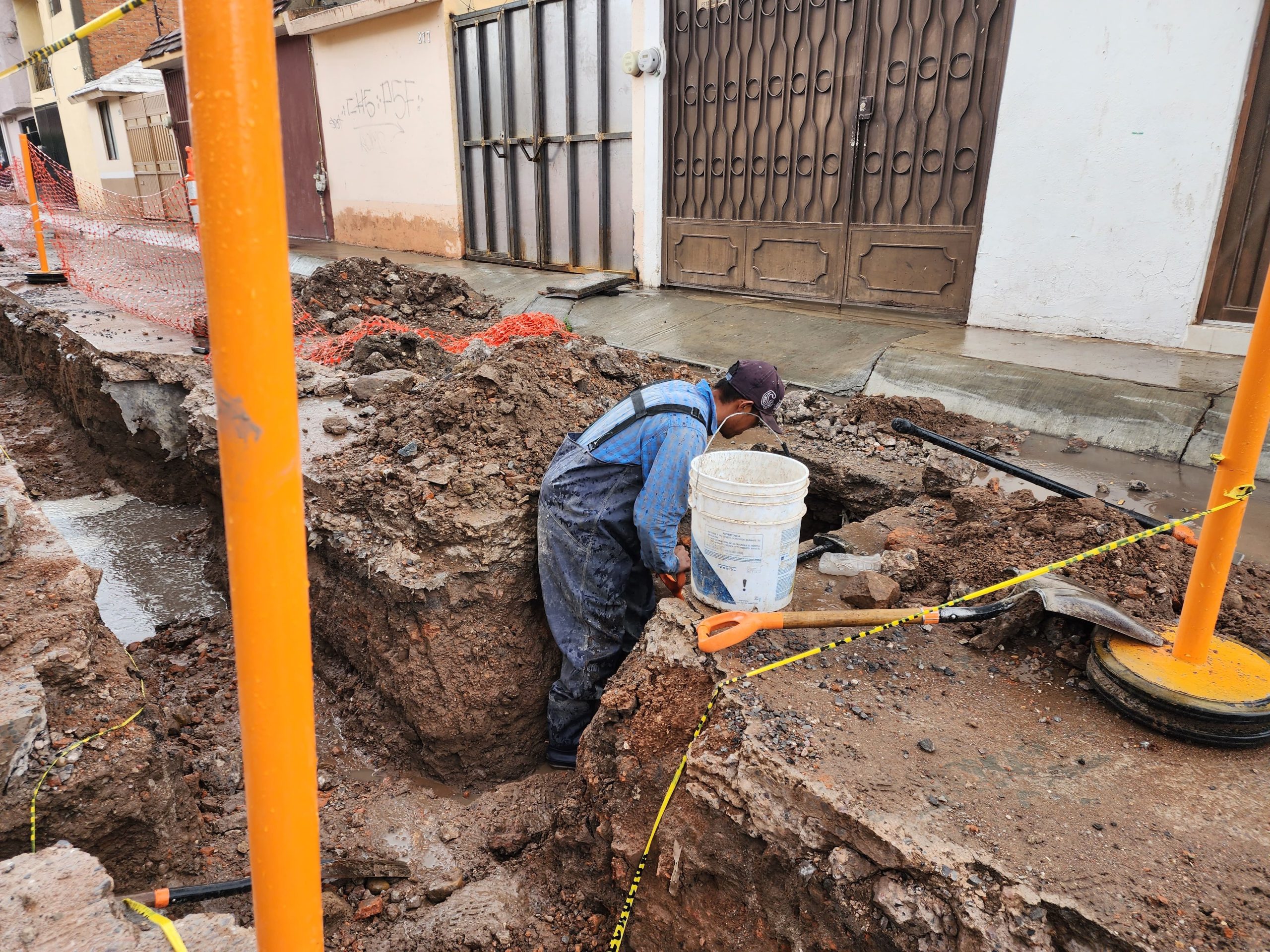 La cuadrilla de trabajo sustituye una línea sanitaria de una longitud de 59 metros lineales, en la que se colocará un tubo de 12 pulgadas de diámetro de material PVC de alta densidad para garantizar la vida útil de la infraestructura.