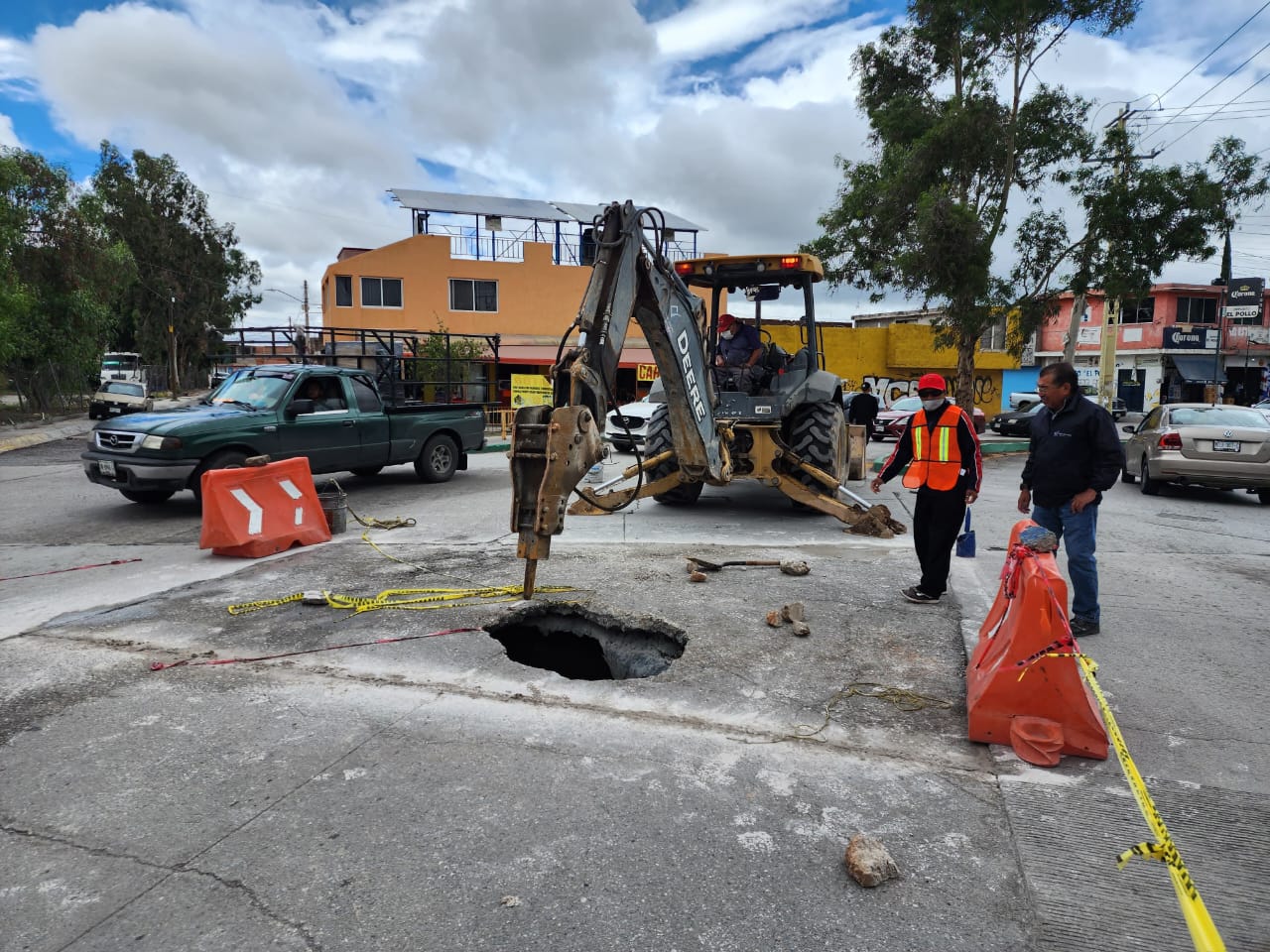 Una cuadrilla de la dirección de Construcción del Interapas se presentó en el lugar para evaluar la situación considerando necesario comenzar de inmediato con las excavaciones para reconocer la dimensión del colapso.