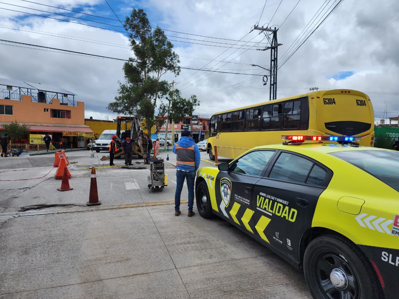 SLP.- El Nuevo Interapas comenzó trabajos de reparación de un colapso detectado este viernes en el cruce del puente Seminario y el colector sanitario que conduce las aguas a la planta tratadora “Tenorio” en la colonia Los Silos.