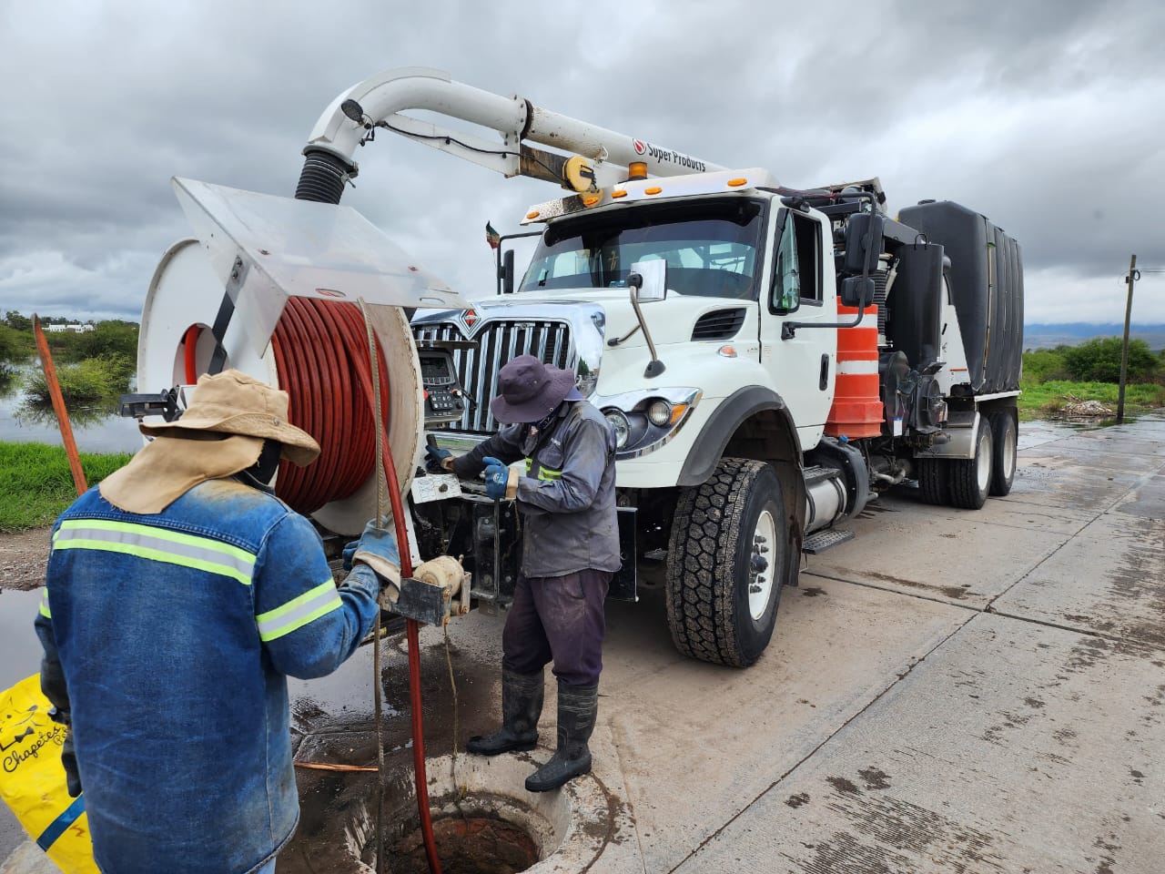 • Con apoyo de un camión de presión succión, se atendieron calles con encharcamientos debido a las recientes lluvias.