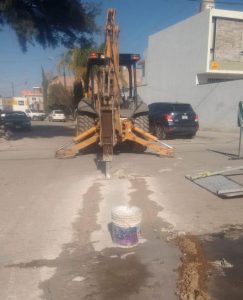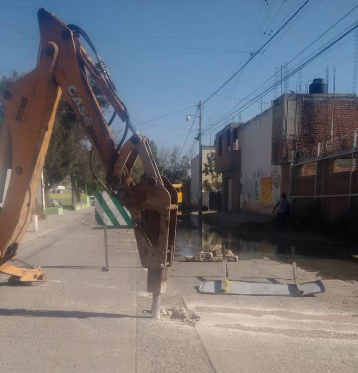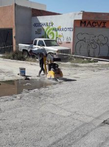 Los trabajos que realizan consisten en la apertura del concreto a través de una cortadora y una retroexcavadora, para proceder a retirar la tubería dañada.
