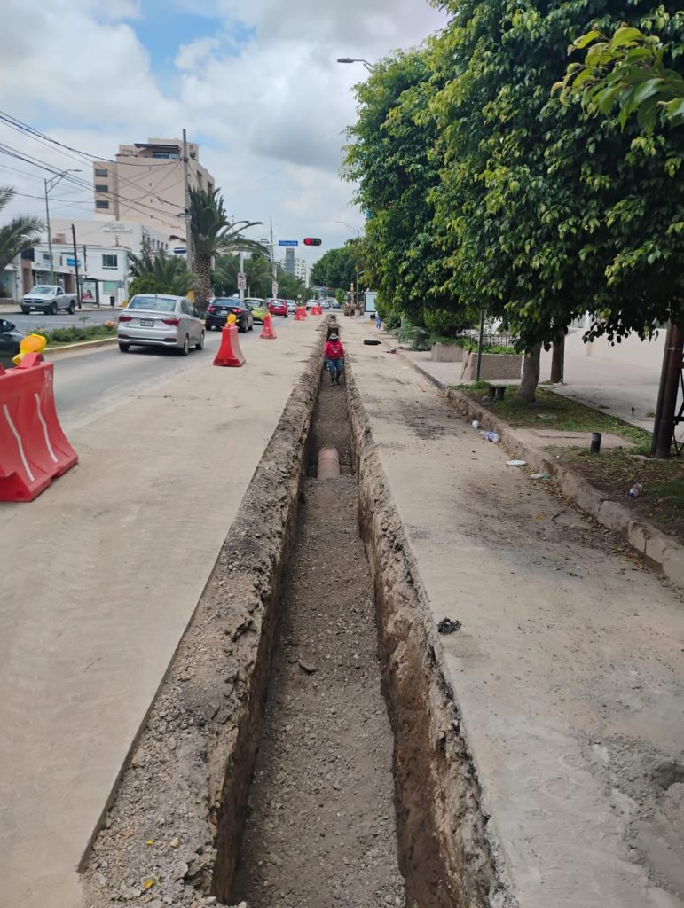 Esta obra necesaria se realiza en un tramo de la conocida avenida que abarca de la calle José Vasconcelos a Miguel de Cervantes Saavedra, donde ya se han colocado más de 60 metros tubo PVC de 15 pulgadas de diámetro de alta densidad.