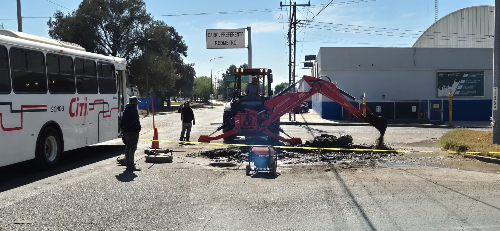 Para poder reparar también se tuvo que encausar las aguas residuales por varios metros sobre el Eje 122, mientras se sustituye el ducto, y se reconstruye el pozo de visita para que funcione.