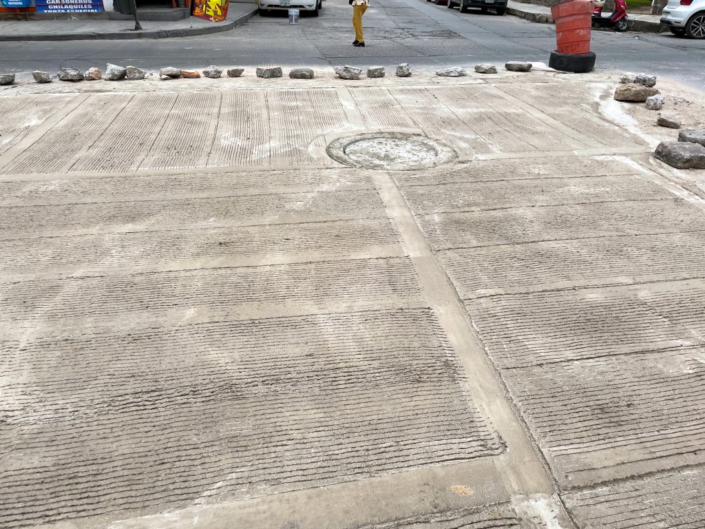 Debido a las condiciones de humedad que prevalecen en el ambiente, el cierre parcial de la vialidad se mantiene para permitir el proceso de fraguado del concreto, lo que asegurará una correcta compactación y condiciones seguras para la reapertura de la calle.
