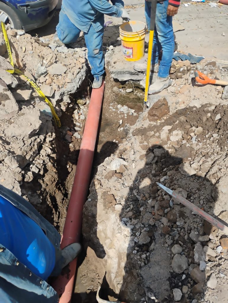 SLP.- Como parte de las acciones continuas para garantizar un sistema sanitario funcional y seguro, este fin de semana Interapas llevó a cabo la reparación de una descarga domiciliaria en el cruce de Mariano Otero y Nicolás Zapata, en el tradicional barrio de Tequisquiapan.