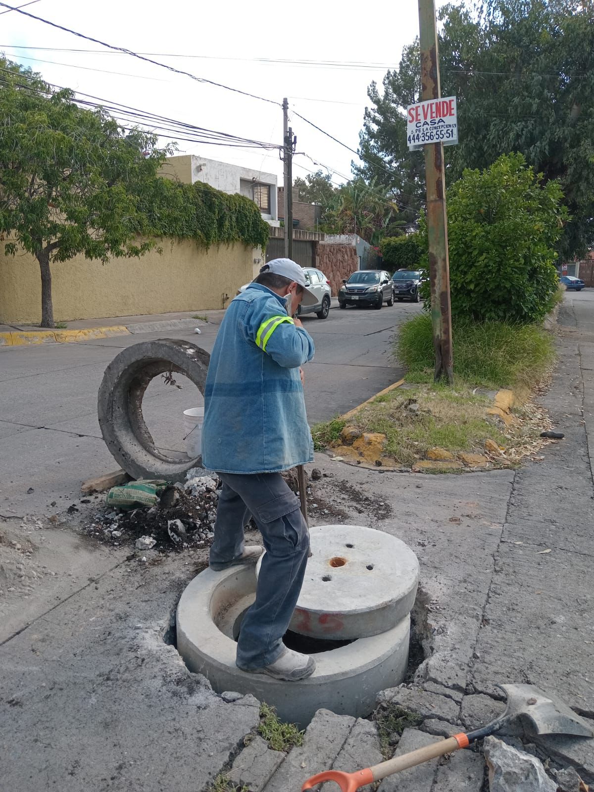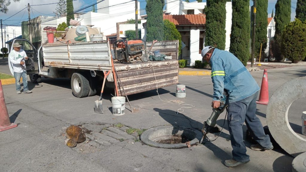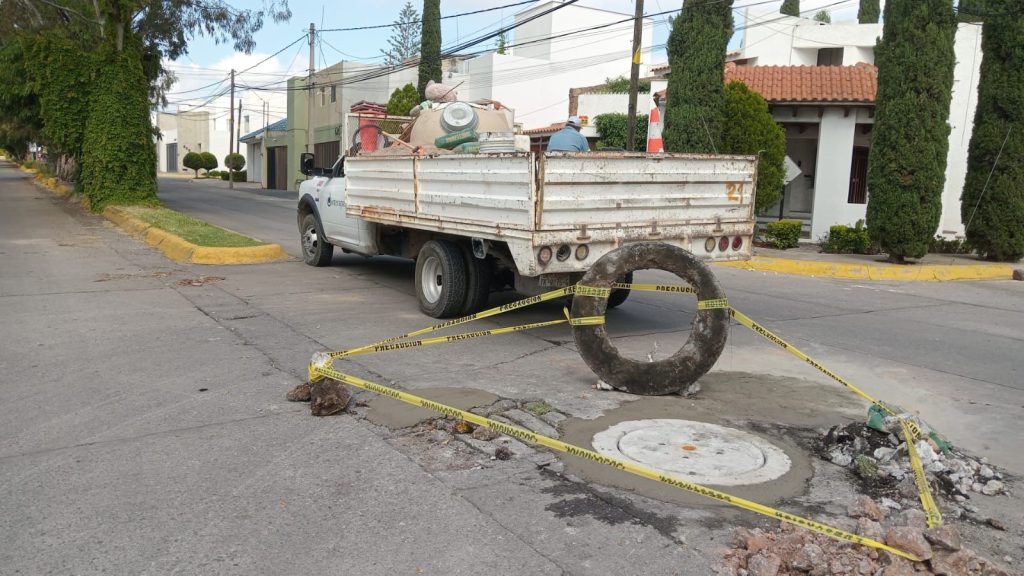 SLP.– A partir de un reporte ciudadano, INTERAPAS detectó el hundimiento de una tapa de pozo de visita en en el cruce de Cordillera Arakan y Sierra de la Concepción en la colonia Lomas Cuarta Sección.