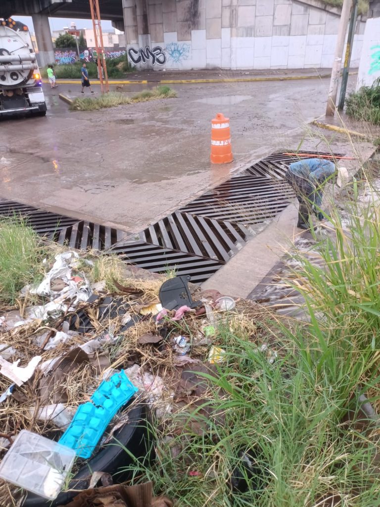 Durante los trabajos se retiraron grandes volúmenes de basura arrastrada por la corriente, la cual obstruyó las rejillas pluviales y ocasionó afectaciones en la zona. Tras la intervención, el sistema de drenaje y pluvial quedó restablecido y funcionando correctamente.