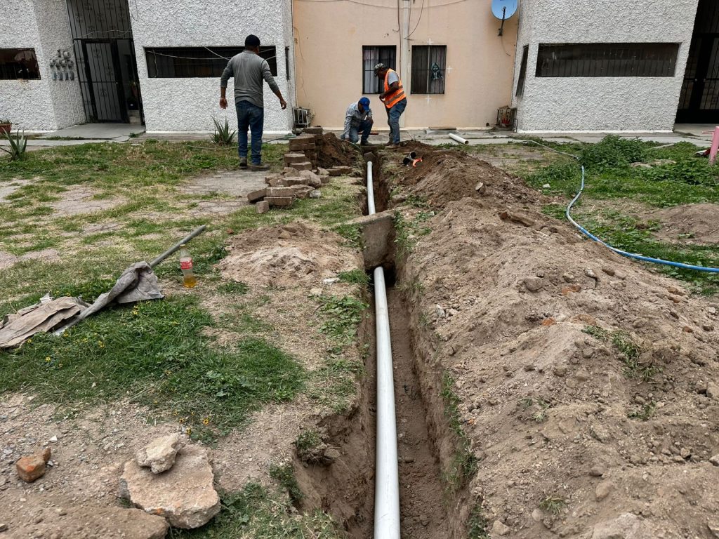 SLP.- INTERAPAS llevó a cabo la renovación de la red hidráulica que abastece a los condominios Naranjos, ubicados en la colonia Jacarandas al norte de la ciudad, con el objetivo de mejorar el suministro de agua potable para las familias de la zona.