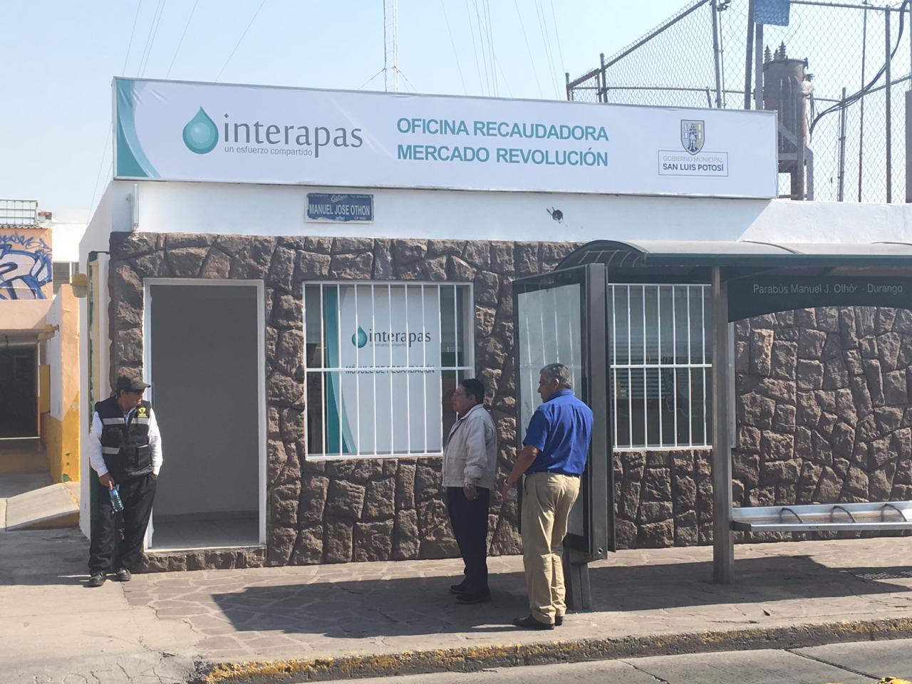 Interapas llevó a cabo la apertura de nueva oficina recaudadora en las instalaciones del Mercado Revolución, en la colonia San Luis, que se suma a las 12 que se ubican en la zona metropolitana de San Luis Potosí y Soledad de Graciano Sánchez, así como a las 3 que se encuentran en las delegaciones municipales de Villa de Pozos, La Pila y Bocas, informó el titular del organismo operador, Ricardo Fermín Purata Espinoza.