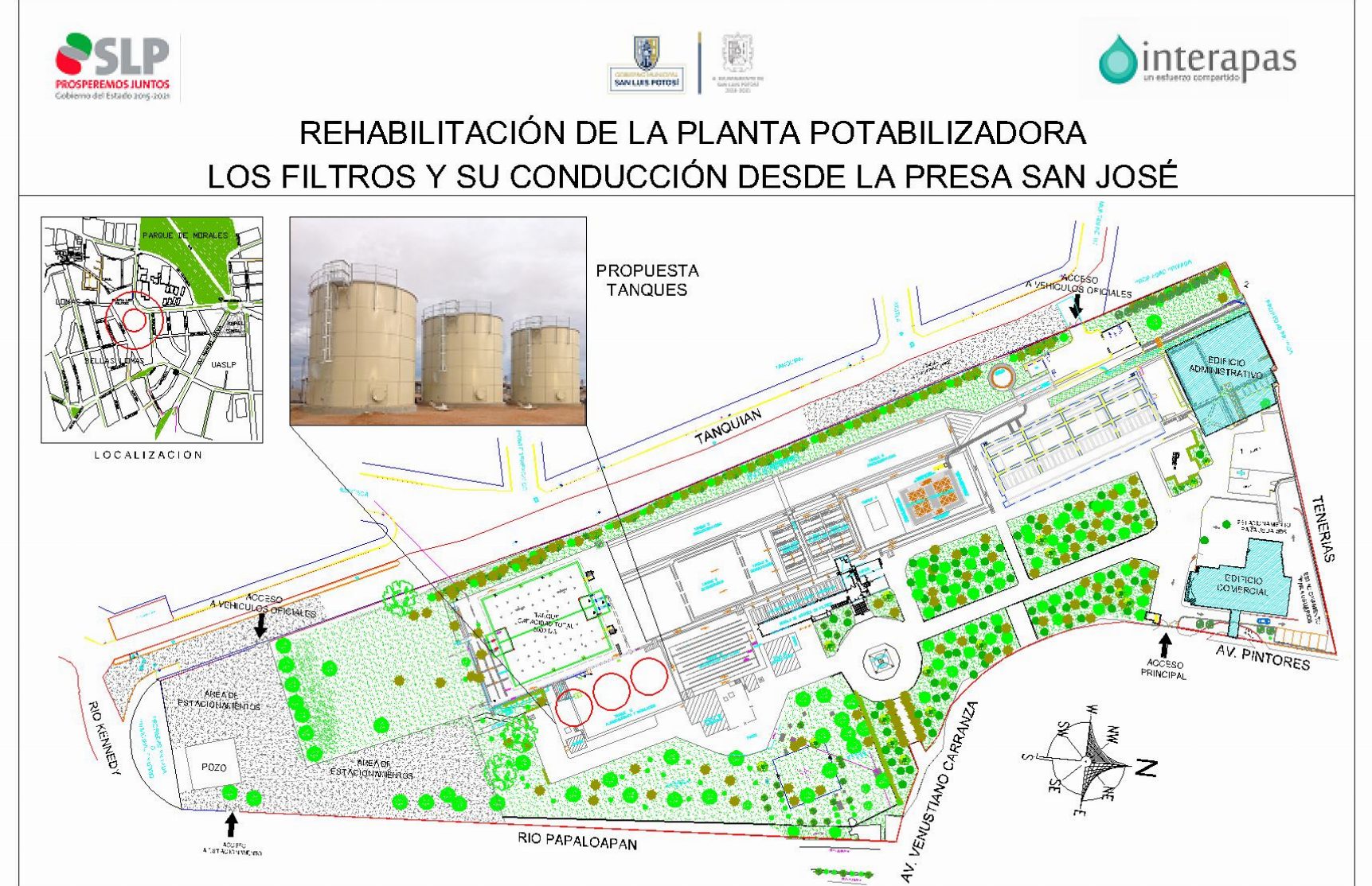 Con una aportación de 30 millones de pesos de Gobierno del Estado y el Ayuntamiento de San Luis Potosí, el organismo operador Interapas llevará a cabo la modernización de la planta Los Filtros y de la línea de conducción de la presa San José, con la finalidad de ampliar la capacidad de potabilización en beneficio de 208 mil personas que habitan en la la surponiente y centro de la ciudad de San Luis Potosí.
