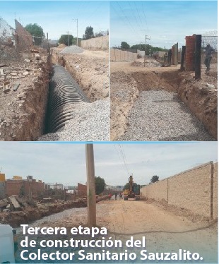 Explicó que la construcción del colector sanitario Sauzalito consiste en la introducción de 458 metros de tubería de polietileno de alta densidad corrugado de 152 centímetros de diámetros, desde la calle Arbolitos hasta la avenida San José del Barro, así como la instalación de 7 pozos de visita tipo caja especial, “como parte del sistema de colectores y emisores sanitarios que alimentan la planta de tratamiento de aguas residuales Norte”.