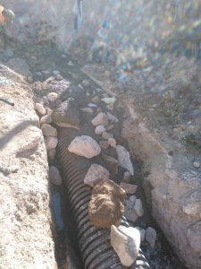 Purata Espinoza detalló que la obra consiste en la construcción de by-pass a base de tubería de polietileno de alta densidad (PEAD) de 18 pulgadas de diámetro (45 cm), en una longitud total de 55 metros lineales, que incluye 4 pozos de visita y el desazolve de las líneas de redes de aguas residuales existentes.