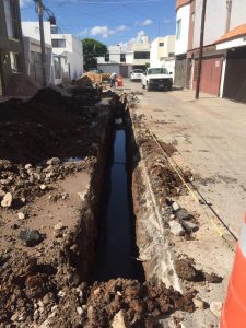 “Estamos atendiendo varios frentes con la finalidad de dar celeridad a los trabajos de reposoción de las redes de drenaje sanitario en la colonia Jacarandas, que derivado a su antigüedad y a que las raíces de los árboles ya se habían incrustado en las tuberías lo que ocasionó que colpasaran”, explicó.