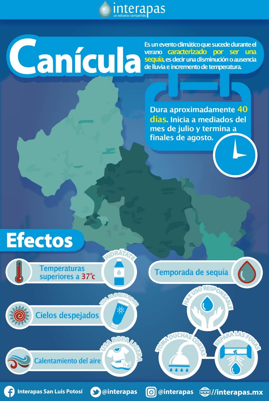 “La canícula ha ocasionado la disminución de lluvias y la presencia de altas temperaturas, que han alcanzado los 35 grados centígrados en la zona metropolitana de San Luis Potosí, Soledad y Cerro de San Pedro”, puntualizó.