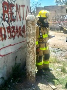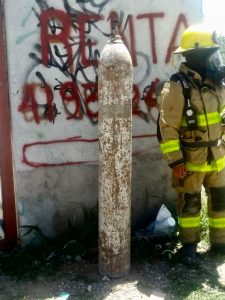 Personal de Interapas, de Protección Civil y del honorable Cuerpo de Bombero realizaron la tarea de acordonar la zona para neutralizar un tanque de gas cloro que se encontraba abandonado en la calle de terracería Valladolid esquina con avenida Observatorio, en la colonia Españita, para que no presentara ningún riesgo a la población que habita en ese sector de la ciudad.