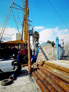 El pozo “Tecnológico” cuenta con casi 40 años de servicio, presenta daños en el ademe, actualmente se realizan trabajos para bajar tubería ranurada de 8 1/2″ de diámetro, iniciando con punta de lápiz y soldando cada uno de los tramos; al momento se han bajado 50 metros de tubo rehabilitado.