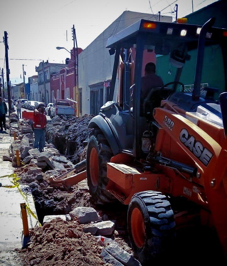 Con apoyo de maquinaria especializada se dio inicio a los trabajos de excavación y retiro de escombro para comenzarcon la sustitución de tubería sobre calle Zamarripa entre 1er. Privada de Zamarripa y Miguel Barragán.