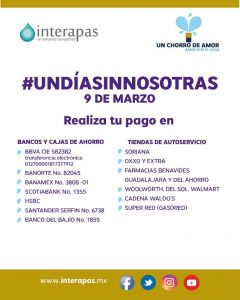 Debido a la postura que asumió el organismo operador de brindar todo el apoyo al Movimiento #UnDíaSinNosotras y derivado de que la fuerza laboral femenina ocupa mayoría en puestos de atención a usuarios, Interapas informa que únicamente habrá servicio en tres de oficinas recaudadoras.