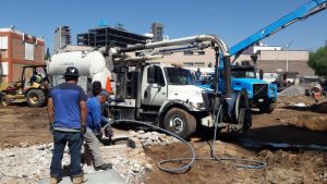 Con ayuda de camión hidroneumático, colaboradores del organismo comenzaron las labores de desazolve con agua a muy alta presión, registro por registro para dejar la red interna limpia evitando futuros problemas con las aguas residuales.
