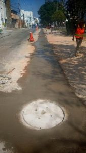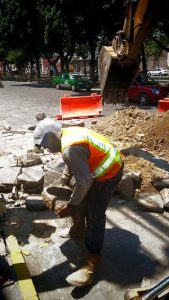 El día de hoy personal del organismo operador concluyó los trabajos de este sector y arrancó con la obra en Calzada de Guadalupe entre calle Casa Madrid y Sevilla y Olmedo, misma que consiste en la apertura del adoquín a través de una cortadora y una retroexcavadora para proceder a sustituir la tubería dañada.