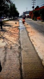 “Aquí se colocarán 80 metros de la red de drenaje, con tubería de 12 pulgadas, beneficiando alrededor de 37 familias de la zona, las operaciones que estamos realizando son en lapsos cortos de tiempo y apoyadas por personal de Gobierno Municipal, en específico por Tránsito ya que son vialidades con carga vehicular importante”, indicó.