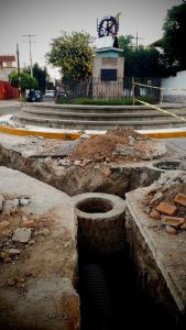 Una vez ubicado el colapso en la calle Fray José de Arlegui, entre Alonso de Veracruz y Góngora, se procedió a la rehabilitación del tubo del drenaje, se realizó un sondeo en la parte afectada y posteriormente con ayuda de maquinaria especializada se abrió el pavimento, al día de hoy se continúa la introducción de tubo de ADS de 12 pulgadas, estimando terminar los trabajos la próxima semana.