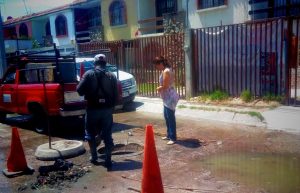 El proceso de trabajo consiste en verificar la zona afectada, se detectan los pozos de visita en el punto más bajo del sector y se realiza un sondeo con varillas o camión hidroneumático, se elimina el taponamiento y se extrae la basura acumulada dejando libre paso al agua residual.