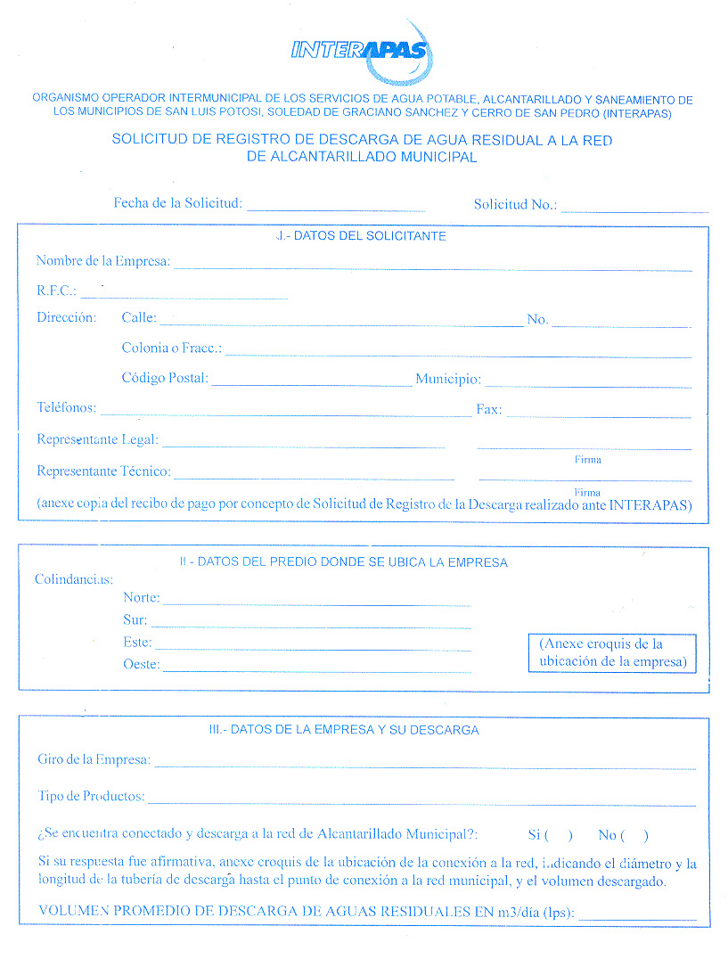 - FORMATO SOLICITUD DE REGISTRO DE DESCARGA DE AGUA RESIDUAL