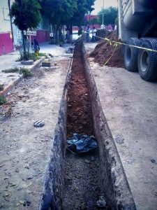 La Dirección de Planeación y Construcción fue la encargada supervisar y ejecutar la obra, misma que cuenta con la colocación de 49 metros de concreto hidráulico, con tubería de polietileno de alta densidad de 12 pulgadas de diámetro y la interconexión de 3 descargas domiciliarias y tomas de agua.
