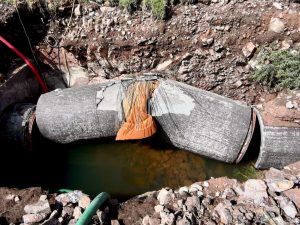 Interapas recibió la notificación por parte de la empresa operadora de El Realito sobre la detección de una nueva fractura en el ducto principal, ubicada en el kilómetro 36 en la localidad de Tierra Nueva.