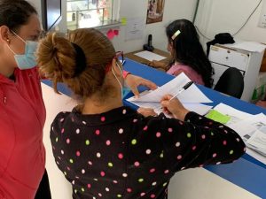Durante la mañana, brigadistas de Interapas recorrieron calles de la Delegación para exhortar a los usuarios con algún tipo de adeudo a visitar el módulo para realizar un pre convenio de participación.