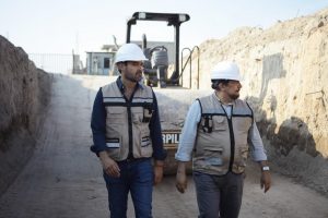 El director general de Interapas Enrique Torres López y el delegado en Soledad Eduardo Durán, realizaron la primera supervisión de la construcción del colector sanitario Primero de Mayo, en Soledad de Graciano Sánchez.