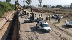 El colector sanitario Primero de Mayo tiene como objetivo ayudar a la recolección y traslado de aguas residuales, contará con una longitud de dos kilómetros de tubería de polietileno de alta densidad y un diamétro de 36 pulgadas.
