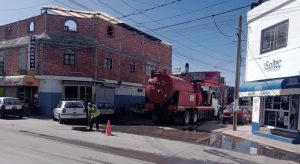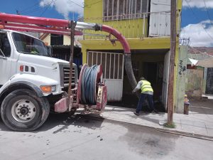 En la colonia Villa Alborada, con apoyo del camión hidroneumático, cuadrillas del organismo hicieron mantenimiento preventivo en 300 metros de la red de drenaje limpiando pozos de visita de varias calles, y retirando lodo, basura y desechos que impedían el flujo de las aguas residuales de la zona.