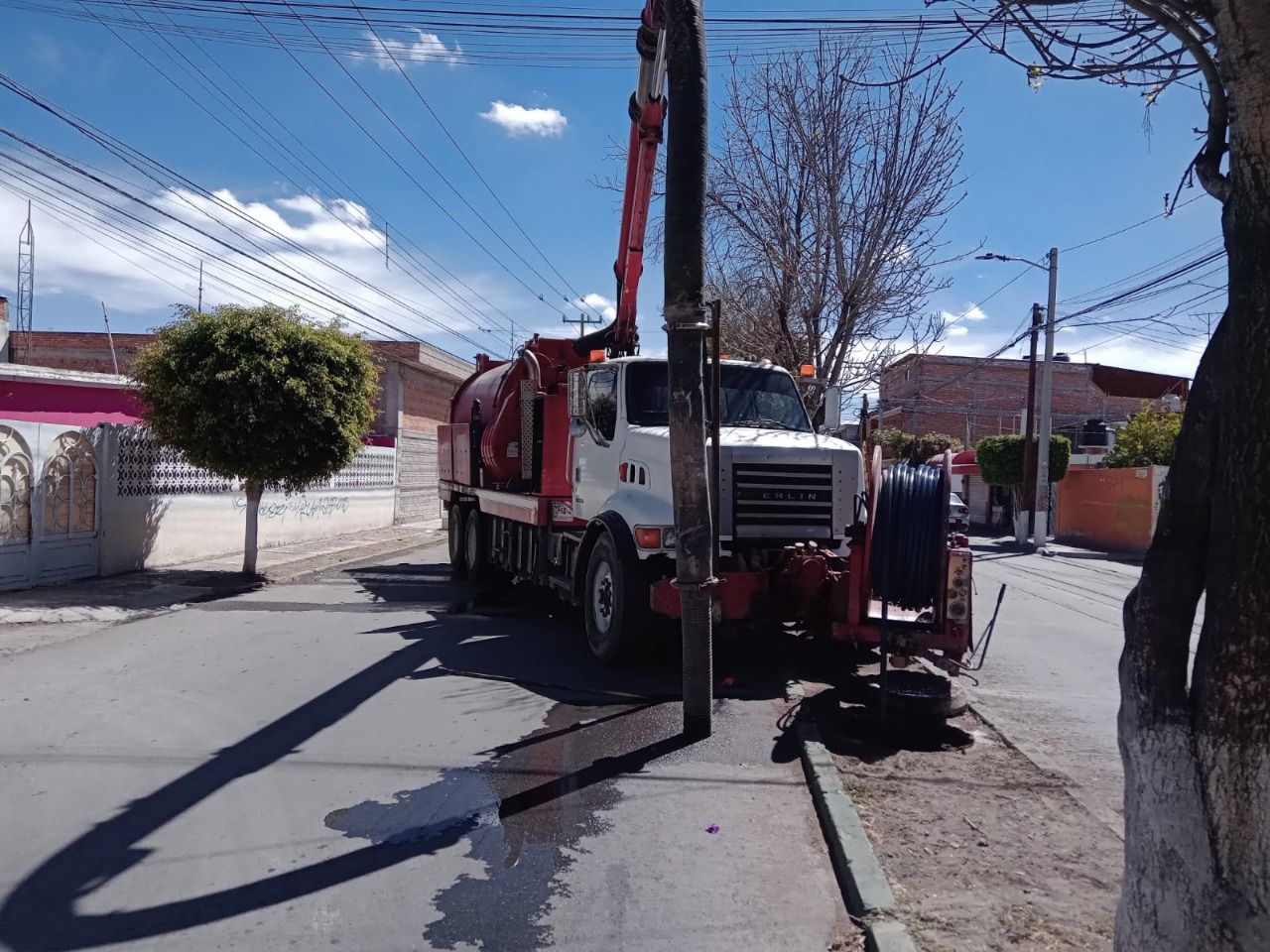 SGS.- Con el objetivo de mantener en buen estado las líneas de drenaje, libres de taponamientos que provoquen fugas de aguas negras, el Organismo Intermunicipal de Agua Potable, Saneamiento y Alcantarillado, (Interapas) atendió esta semana las colonias Hogares Ferrocarrileros y San Felipe en el municipio de Soledad de Graciano Sánchez.