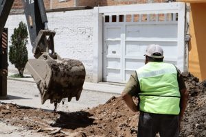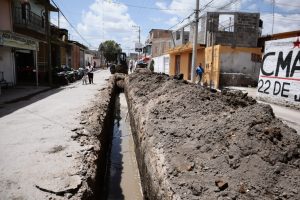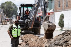 SLP.-En atención a una solicitud hecha por vecinos de la colonia Imperio Azteca al programa “Fuga Cero”, personal de la dirección de Construcción del Nuevo Interapas intervino de manera inmediata la reposición de una línea de drenaje sanitario, tras la aparición de un socavón en esa demarcación.