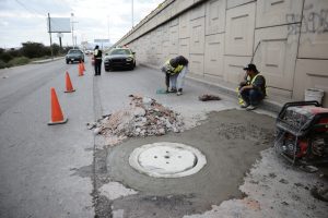 SLP.-  De manera inmediata el Nuevo Interapas a través del programa “Fuga Cero” repuso cuatro tapas de pozos de visita sobre el periférico norte, para evitar accidentes y riesgos a la población.