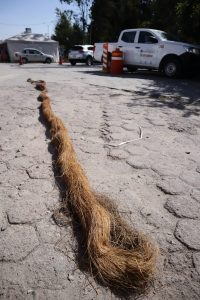 Ahí, el personal extrajo una raíz de aproximadamente 6 metros de largo que se encontraba dentro de un tubo de la red drenaje de 4 pulgadas de diámetro que obstruía el correcto flujo del agua.