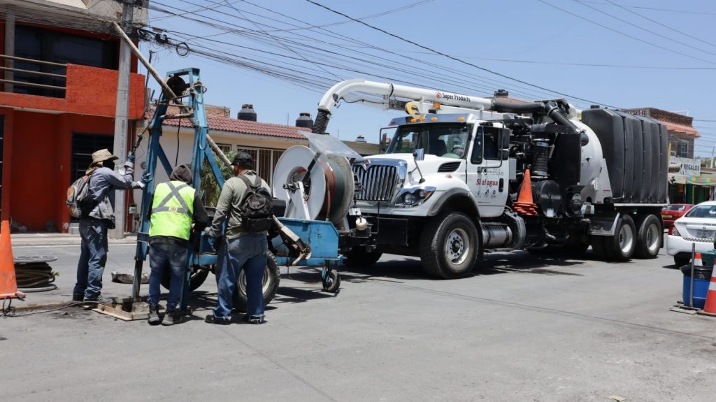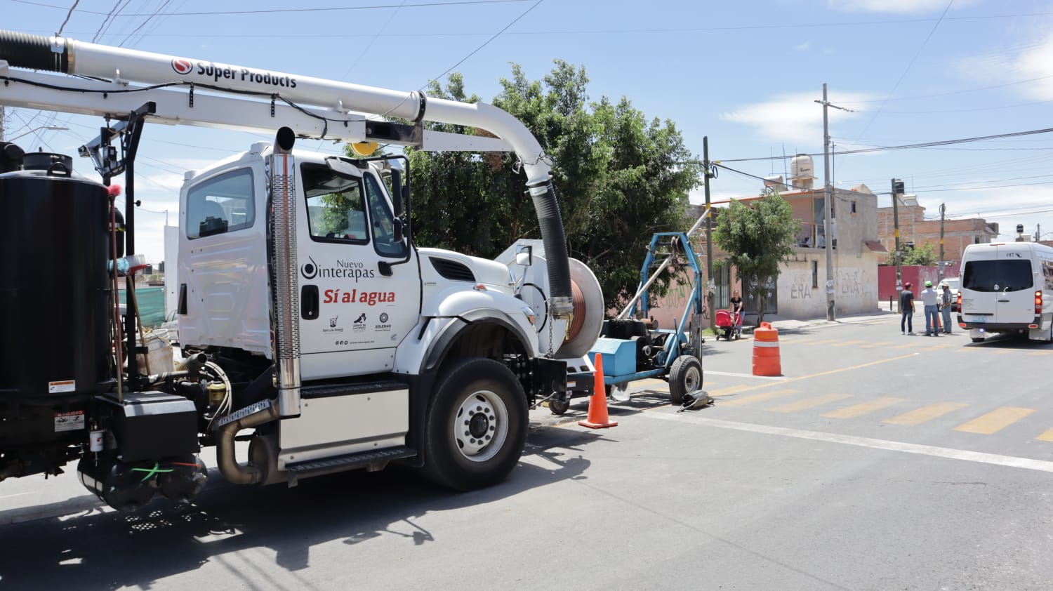 SLP.- Para evitar problemas de inundaciones en demarcaciones antiguas y propensas a la generación de lodos, el Nuevo Interapas realiza limpieza preventiva mediante el uso de una tecnología económica pero eficiente, conocida como “malacates”.