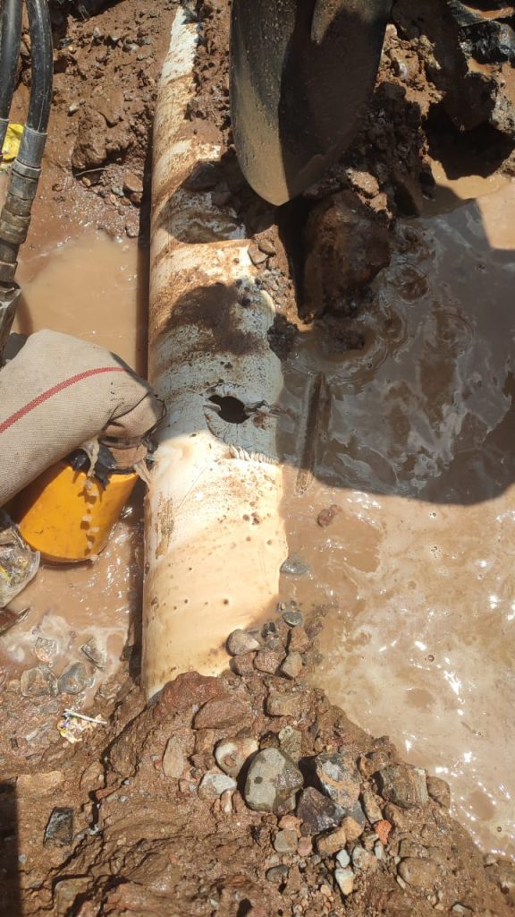 SLP.- La cuadrilla de plomeros del Nuevo Interapas, logró recuperar un importante caudal en la zona oriente de la capital, luego de reparar la fuga agua de una línea de 8 pulgadas en la calle Molino Rojo cruce con calle la Libertad perteneciente a Rancho La Libertad.