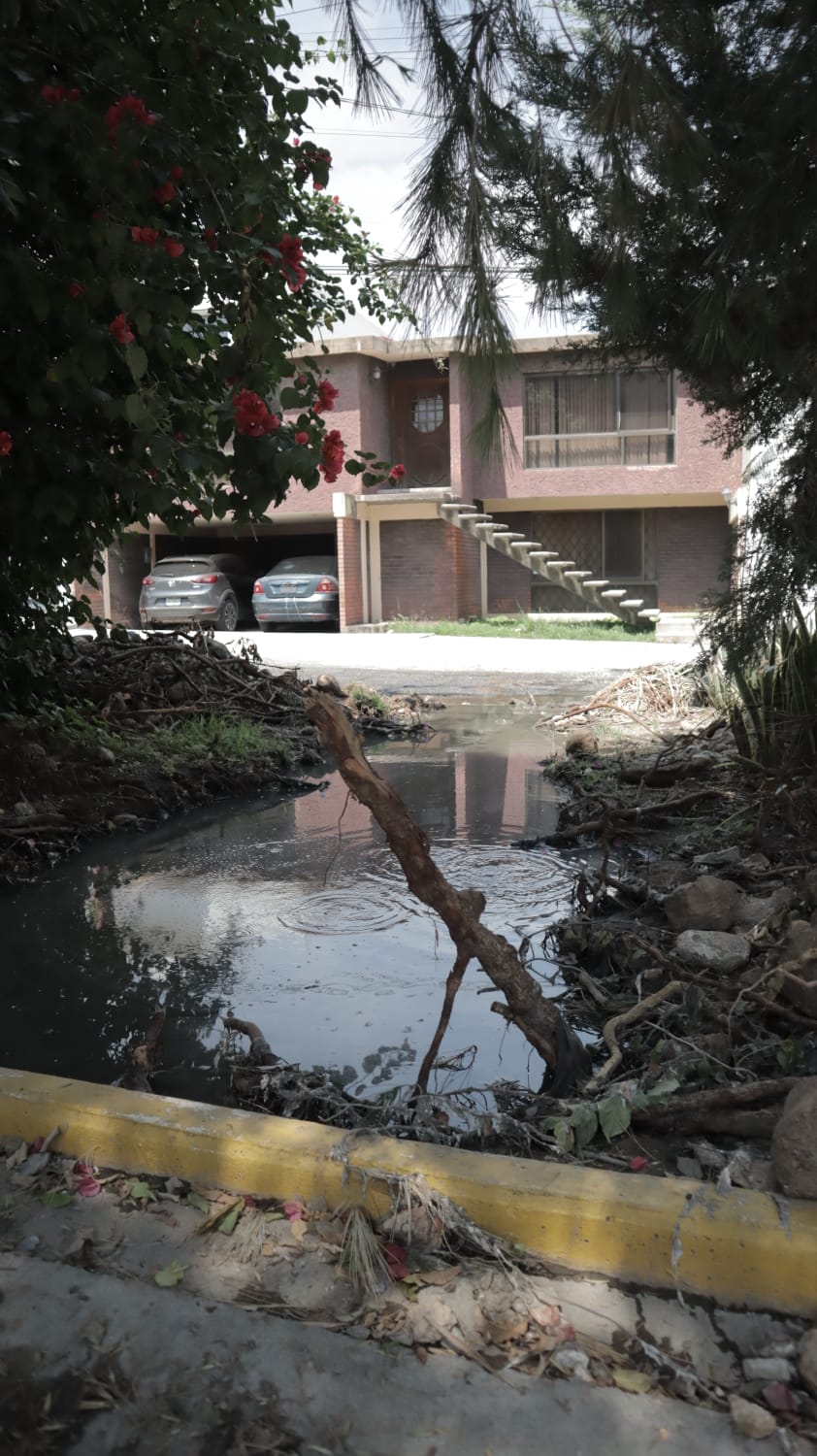 - Los trabajos involucran salvar el camellón por donde pasa la línea de drenaje averiada.