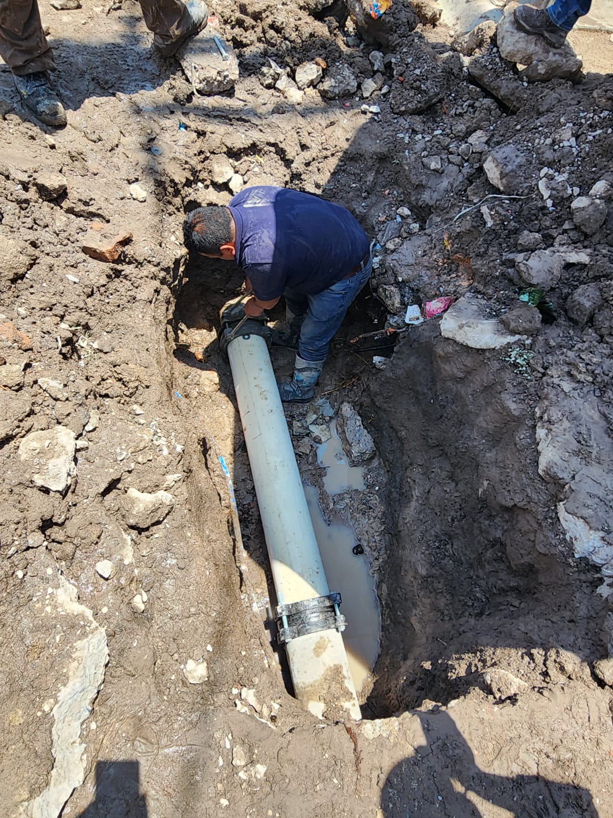 En el punto la cuadtilla de trabajo colocó tres metros lineales de tubo de 8 pulgadas de PCV de alta densidad, lo que garantiza la distribución del vital líquido a través de la red.