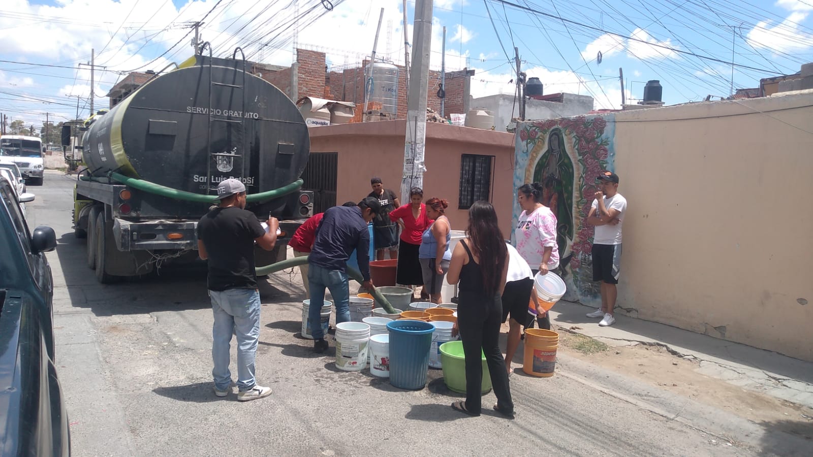 - La pipa acudió junto con personal de la Delegación de Soledad de Graciano Sánchez a atender las demandas de los vecinos, cuando ocurrió la agresión.