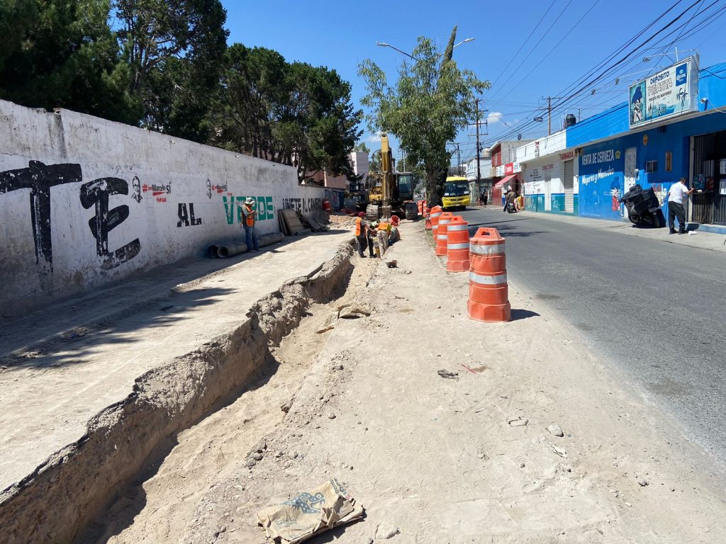 SLP.- El Nuevo Interapas avanza con la construcción del colector sanitario sobre la avenida Morales Saucito en su segunda etapa, con lo que se dará una solución permanente a los problemas recurrentes de desfogue de aguas negras en la zona.