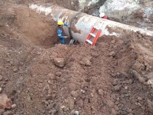 - Se desprende la soldadura de un tramo de la tubería por la presión que genera el traslado del agua a los tanques de almacenamiento y distribución ubicados en la zona ZMSLP.