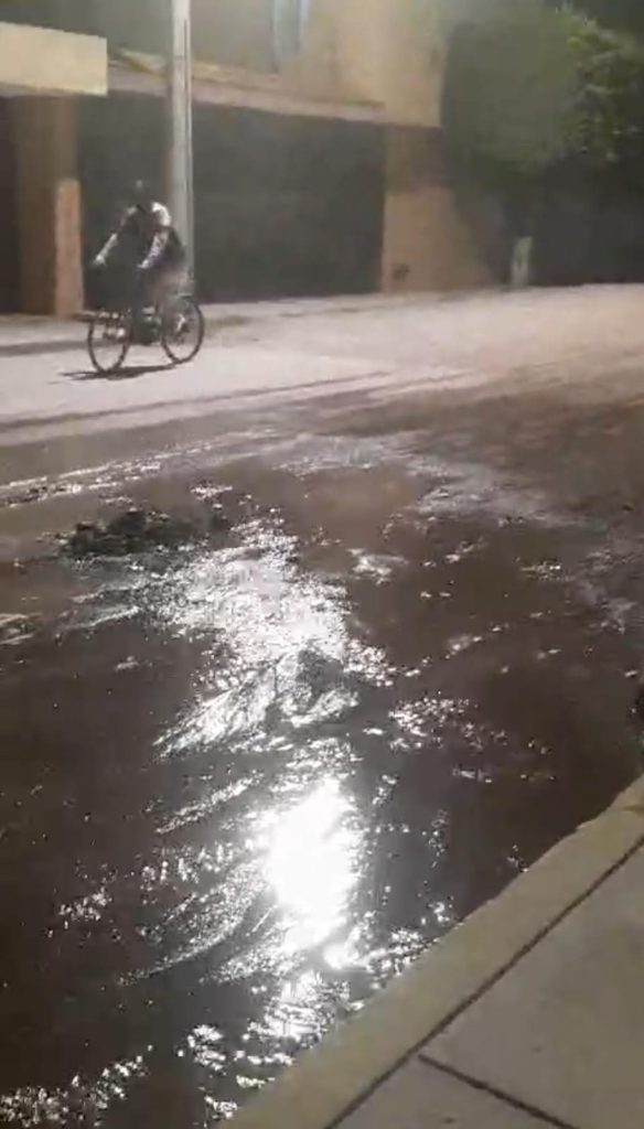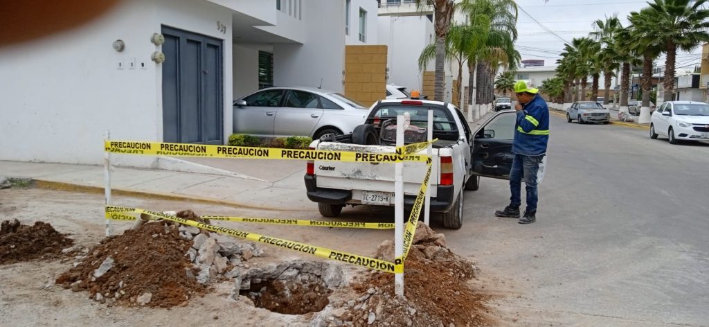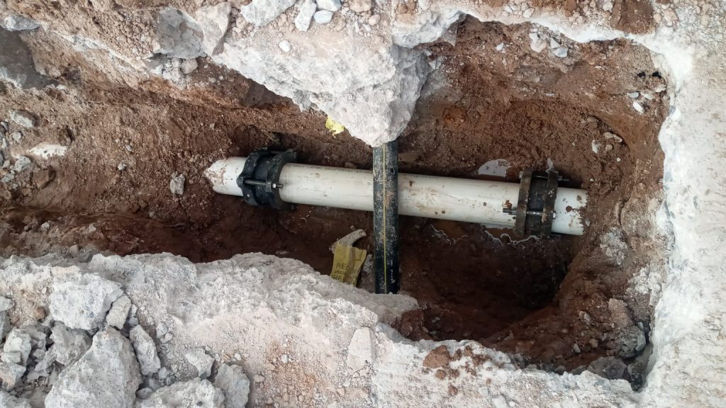 Una cuadrilla de plomeros especialistas del organismo operador se presentó en el primer punto la intersección de Cascada y Lluvia, detectando que la empresa había roto un ducto de la red pública de agua, y sin avisar sobre el daño “resolvieron” colocando un pedazo de manguera en el tubo pvc y debido a que la reparación era de mala calidad, comenzó el desperdicio.