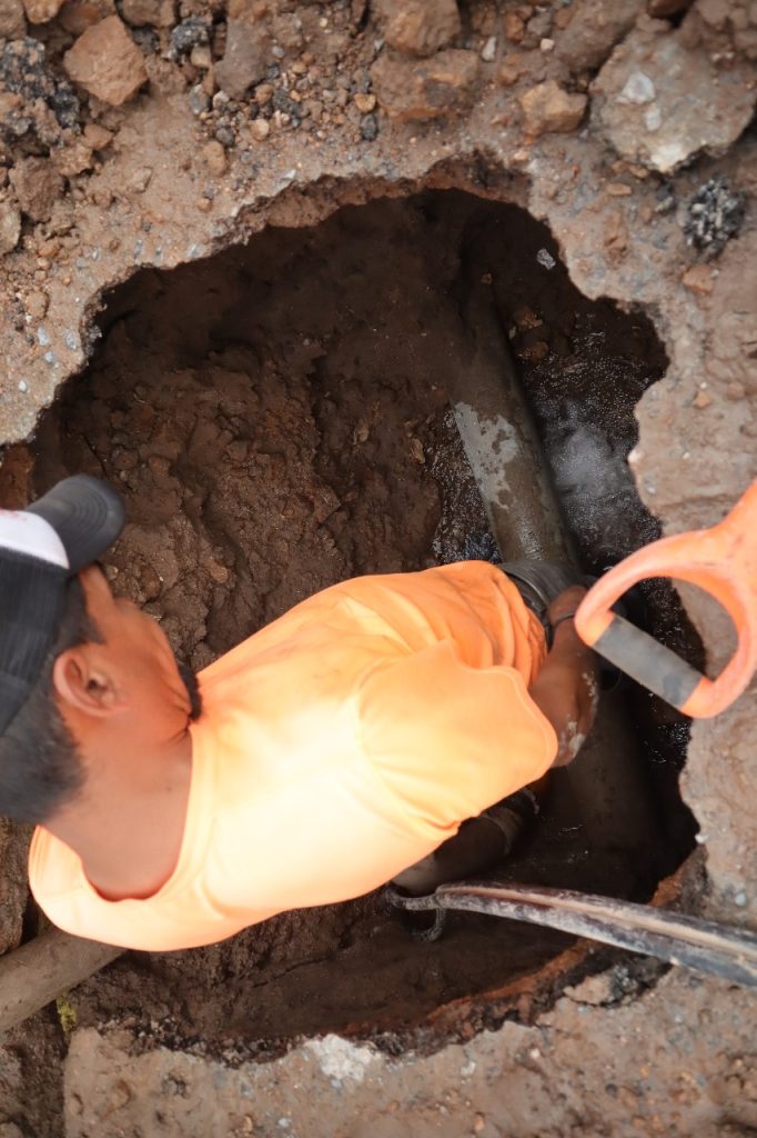 Como primer paso, se detuvo el paso del agua para evitar el desperdicio, procediendo posteriormente a su reparación.